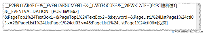 对比发现 VIEWSTATE 和EVENTVALIDATION 的值每次都是变化的,且无规律的所以在这里我们给定义成随机值,分别为 [POST随机值1] ,[POST随机值2] 。