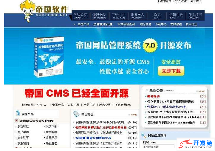 【2013年03月27日】:帝国网站管理系统7.0正式版发布,系统构架更加先进,性能更加强劲。