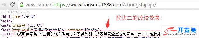 下面以一个家具网的“中式欧美家具”栏目标题的优化设置为例进行说明(如下图):