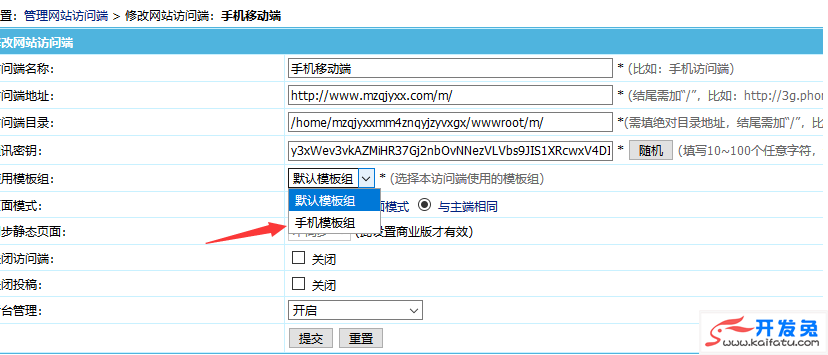 2、另外,帝国cms做手机站的正确方法是,先将pc站全部做好,然后将pc站模板导出,然后重新创建新的模板组,然后切换到手机端后台,模板组选择手机端,然后修改相对应的模板即可,本身是无法添加都某个栏目的