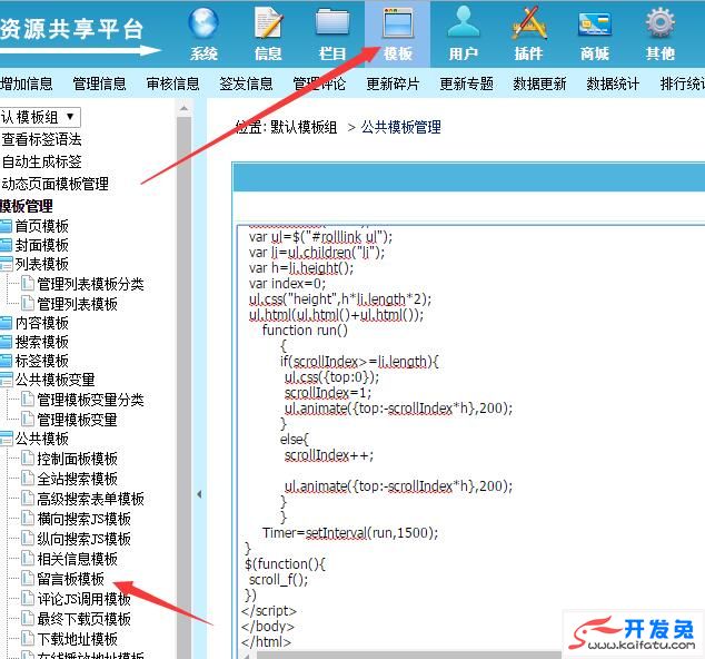 第一步,进入后台,选择“模板”——“公共模板”——“留言板模板”,然后把模板代码复制到dreamwever上就可以进行修改。