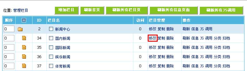 | 调用:查看该栏目的实际地址及JS调用地址。 |