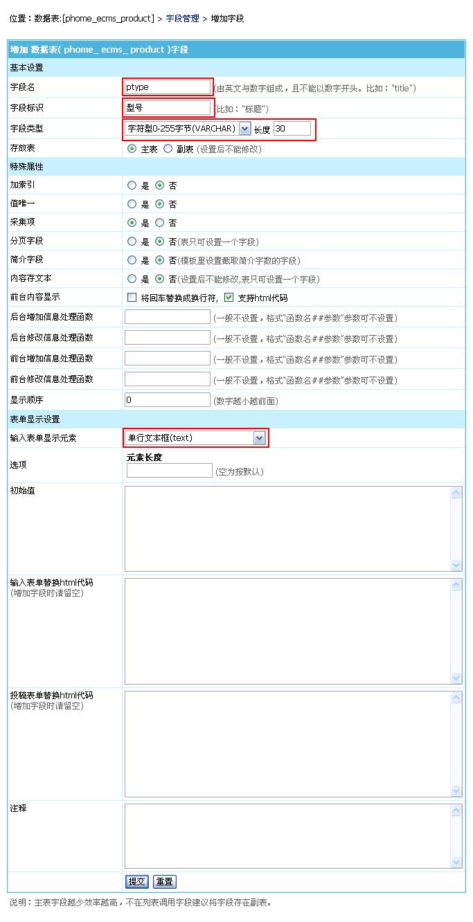 说明:由于只是教程,所以我们下面只实例制作比较简单的产品系统,用户也可以依自己实际情况增加产品参数字段。