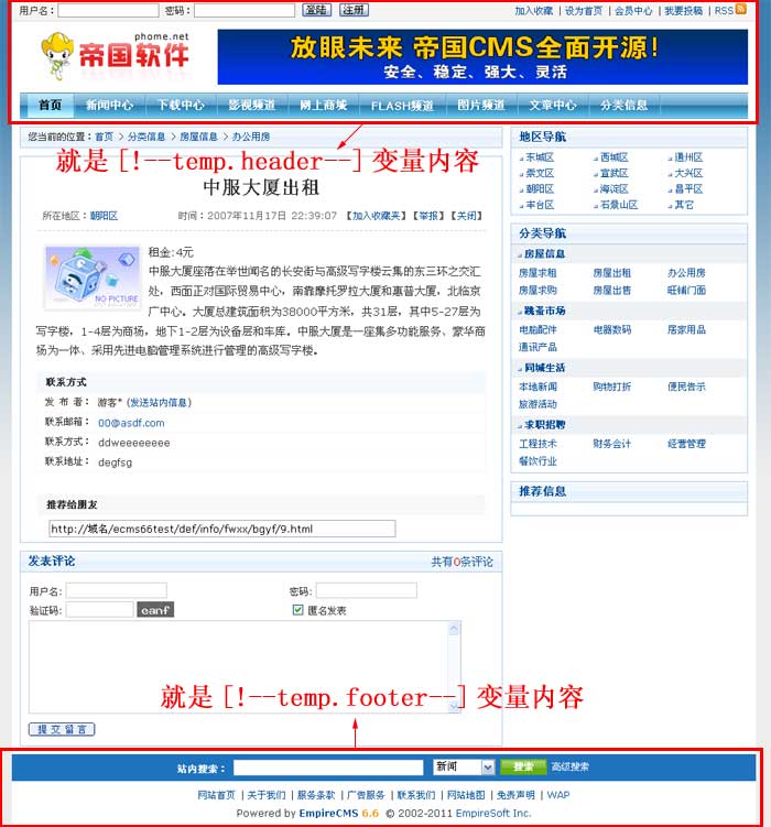 | 4、以后修改内容只需修改公共模板变量值即可修改所有调用此变量的页面。 |