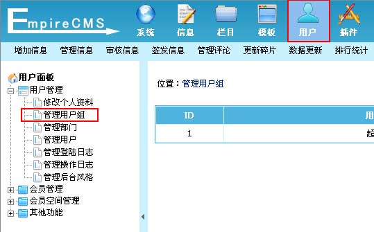 帝国CMS管理用户组设置教程