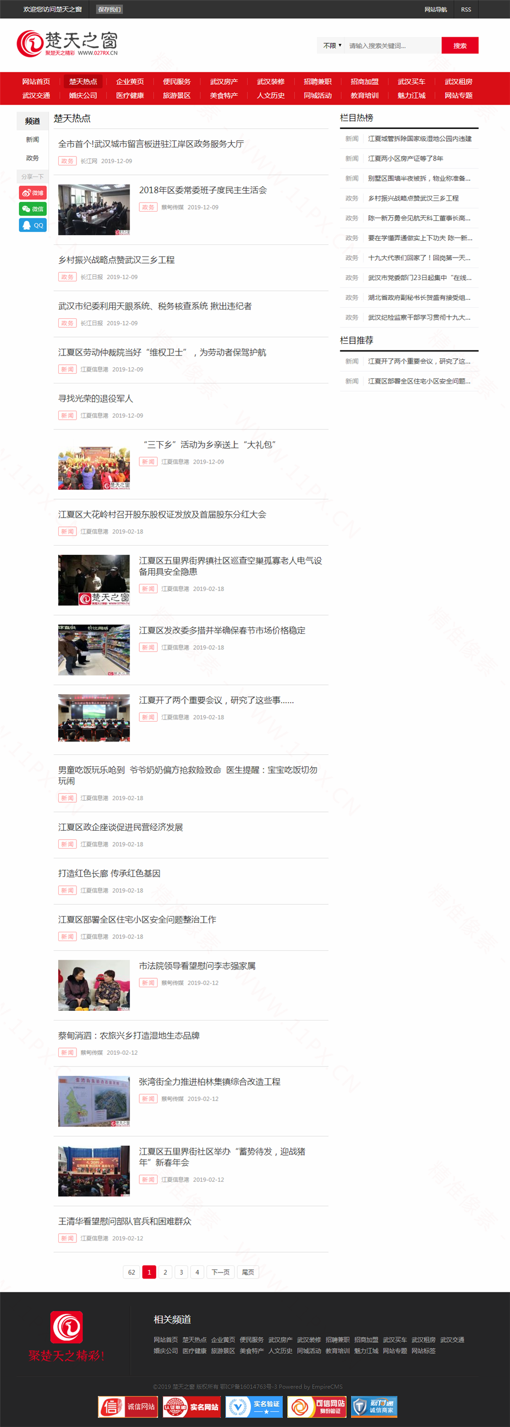 精准像素原创自营地方新闻门户网站模板,网站模板为帝国CMS7.5版本,UTF-8编码。
