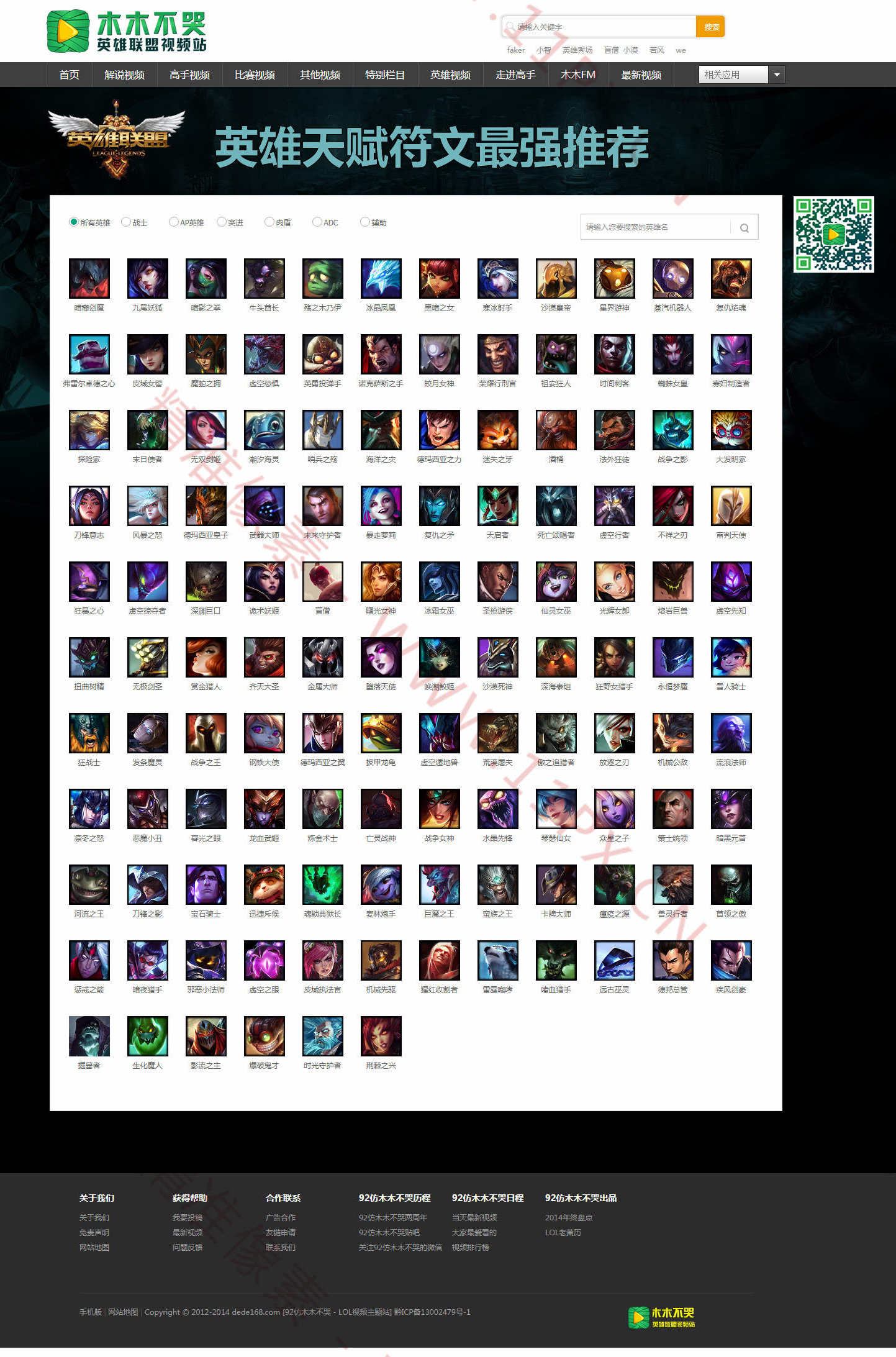 本英雄联盟游戏视频网站源码为帝国CMS7.5系统内核制作,仿制的木木不哭网站。编码为UTF-8编码,自带36000条测试数据,1G图片附件。