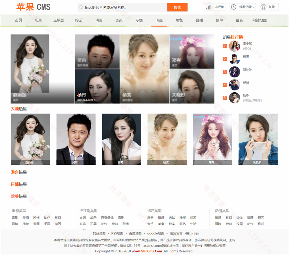 橙色风格苹果CMS V10模板,测试有部分样式错误,需要修改部分调用代码。网站模板基于苹果CMS v10开发,utf-8编码。