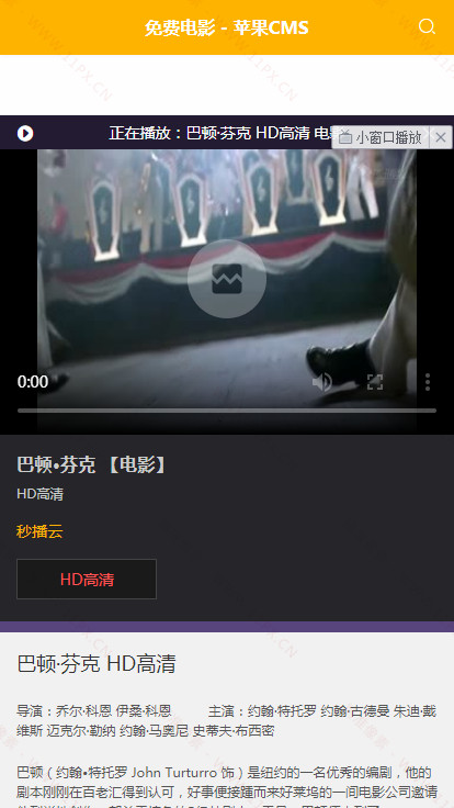 基于苹果cmsV10系统开发,网站模板分为首页、列表页、内容页、播放页。