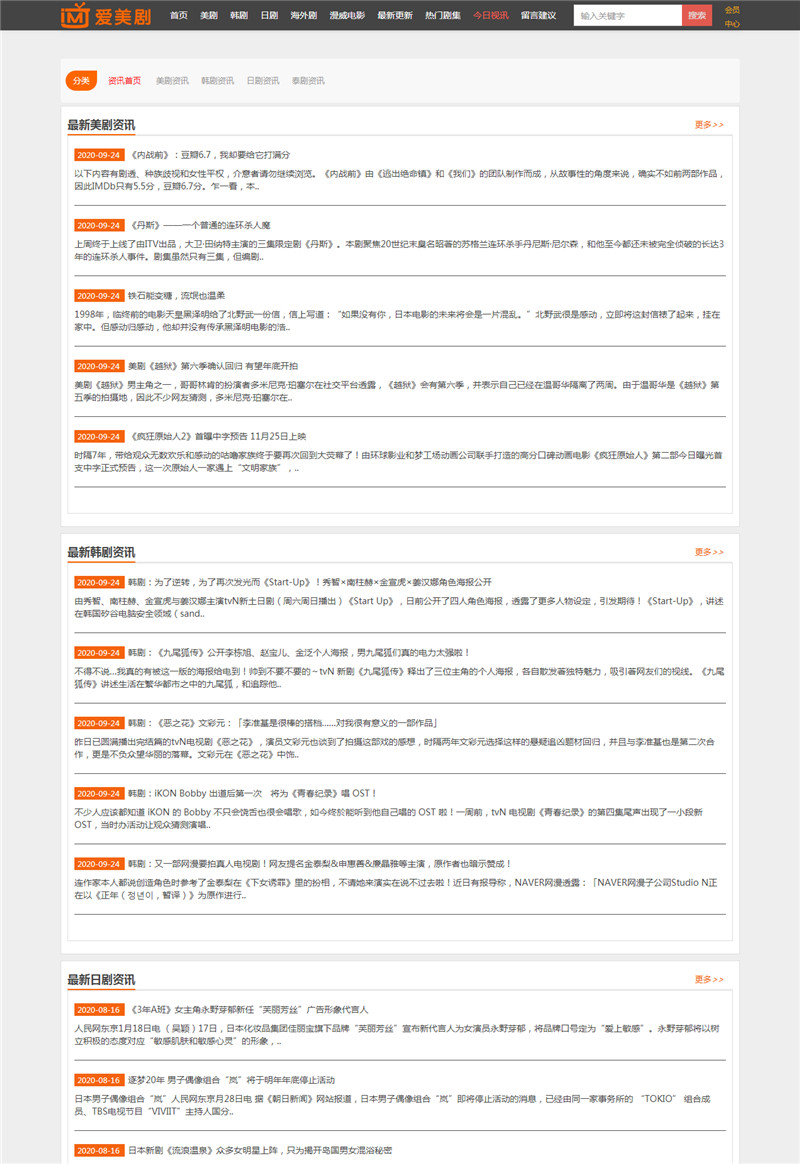 海洋CMS最新仿爱美剧网站模板,为庆祝海洋CMS回归,特分享自用海洋cms模板一套。自适应手机端,内含 视频 资讯 留言模块。